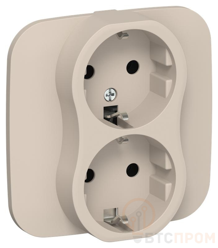 Розетка 2-м СП FLITE РС12-1-А-ФлЛ 16А с заземл. без защ. шторок безвинтовое крепление в сборе механизм льняной IEK FI-R21A-16-1-K88