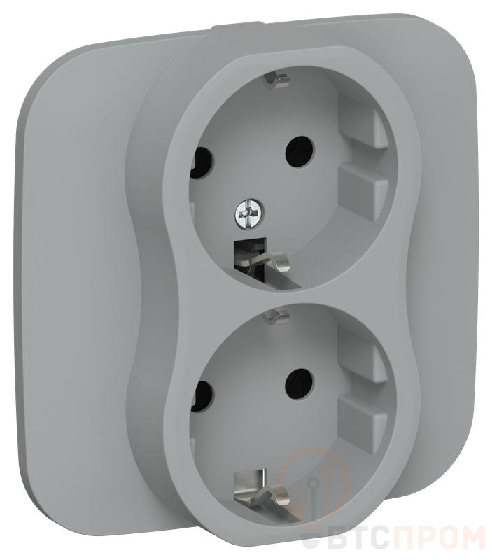 Розетка 2-м СП FLITE РС12-1-А-ФлС 16А с заземл. без защ. шторок безвинтовое крепление в сборе механизм сер. IEK FI-R21A-16-1-K03