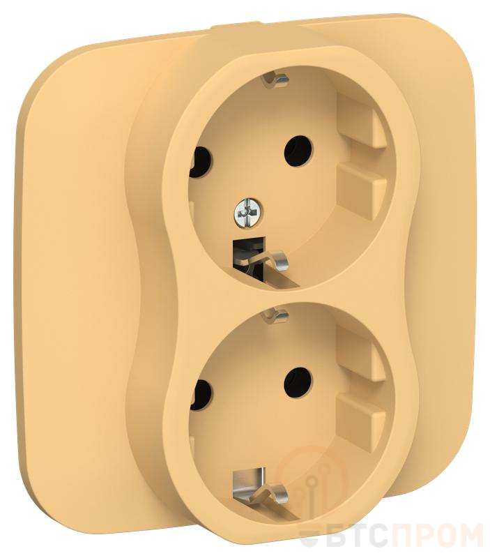 Розетка 2-м СП FLITE РС12-1-А-ФлЗ 16А с заземл. без защ. шторок безвинтовое крепление в сборе механизм золотарник IEK FI-R21A-16-1-K90
