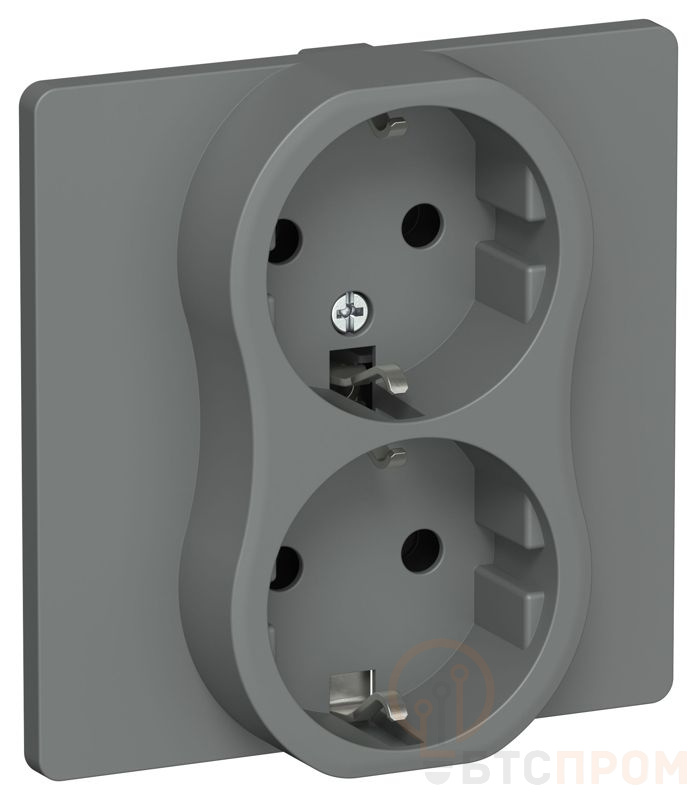Розетка 2-м СП FLITE РС12-1-К-ФлМА 16А с заземл. без защ. шторок безвинтовое крепление в сборе механизм мокрый асфальт IEK FI-R21C-16-1-K80