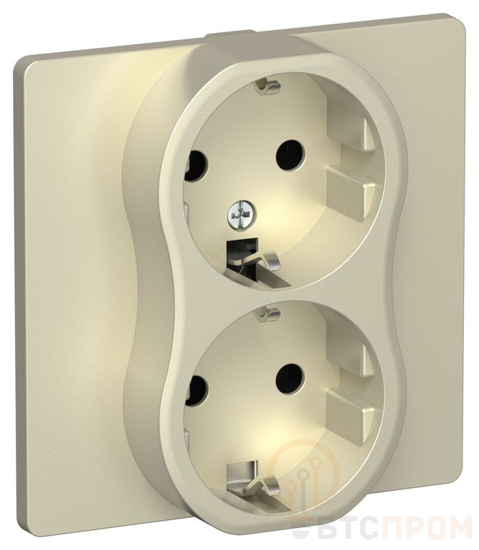 Розетка 2-м СП FLITE РС12-1-К-ФлШ 16А с заземл. без защ. шторок безвинтовое крепление в сборе механизм шампань IEK FI-R21C-16-1-K37