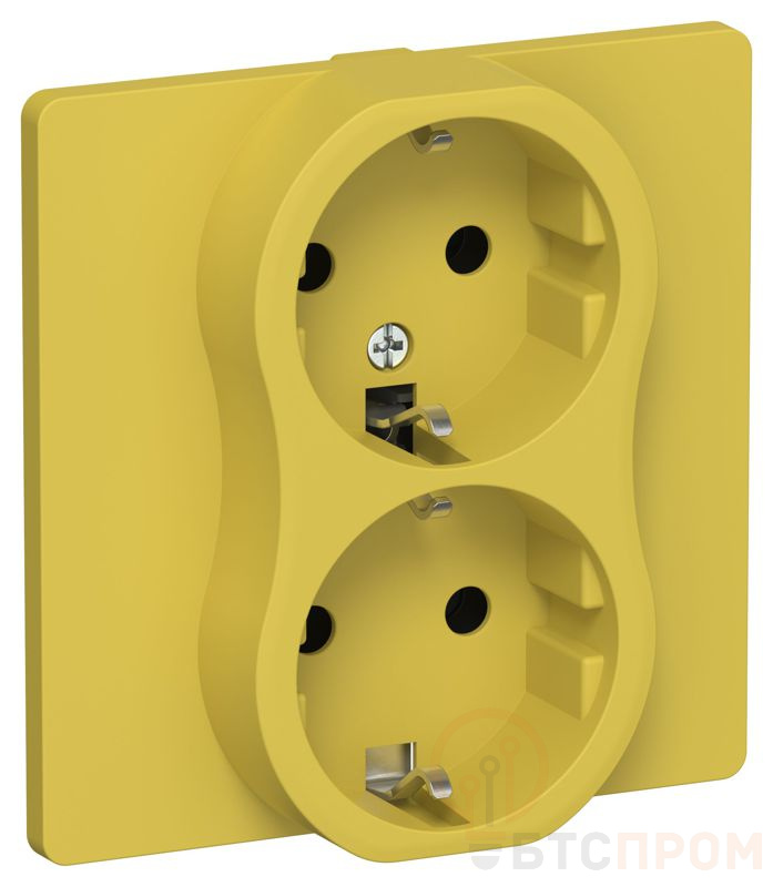 Розетка 2-м СП FLITE РС12-1-К-ФлЖК 16А с заземл. без защ. шторок безвинтовое крепление в сборе механизм желт. карри IEK FI-R21C-16-1-K44