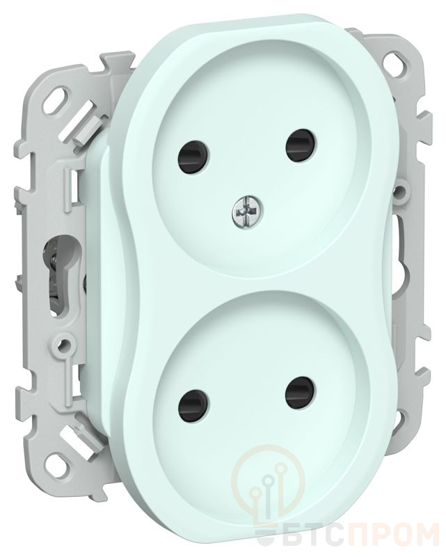 Розетка 2-м СП FLITE РСш02-1-ФлХЛ 10А без заземл. с защ. шторками безвинтовое крепление механизм холод. лед IEK FI-R23-10-1-K94