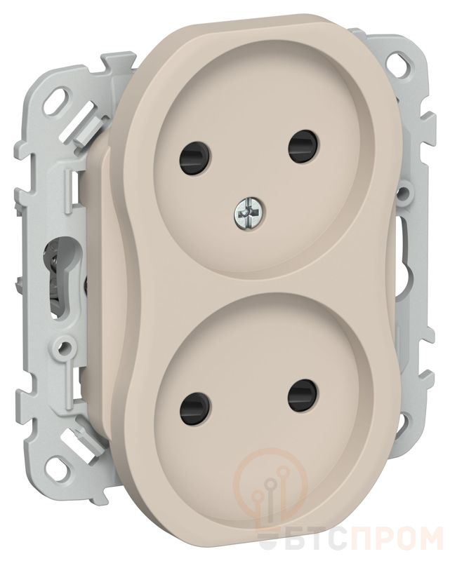Розетка 2-м СП FLITE РСш02-1-ФлЛ 10А без заземл. с защ. шторками безвинтовое крепление механизм льняной IEK FI-R23-10-1-K88