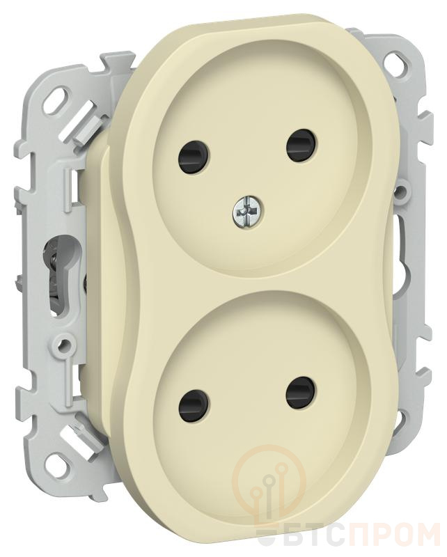 Розетка 2-м СП FLITE РСш02-1-ФлН 10А без заземл. с защ. шторками безвинтовое крепление механизм навахо IEK FI-R23-10-1-K87