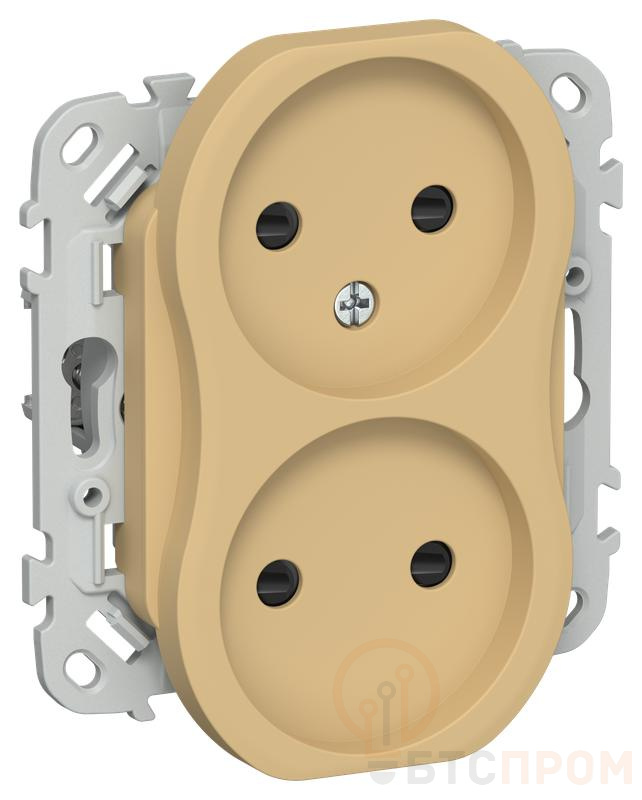 Розетка 2-м СП FLITE РСш02-1-ФлШм 10А без заземл. с защ. шторками безвинтовое крепление механизм шамуа IEK FI-R23-10-1-K89