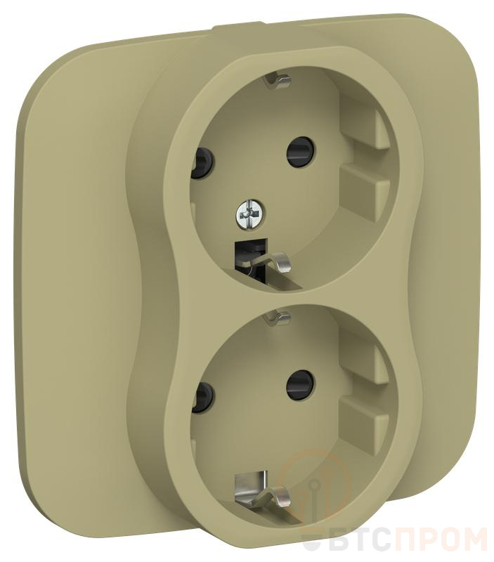 Розетка 2-м СП FLITE РСш12-0-А-ФлО 16А с заземл. с защ. шторками в сборе механизм олив. IEK FI-R24A-16-K26