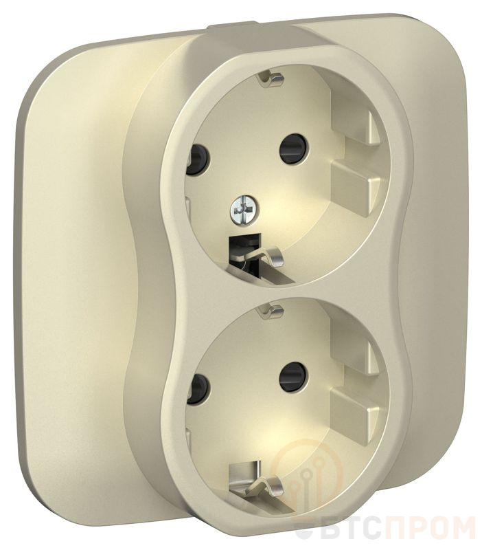 Розетка 2-м СП FLITE РСш12-0-А-ФлШ 16А с заземл. с защ. шторками в сборе механизм шампань IEK FI-R24A-16-K37