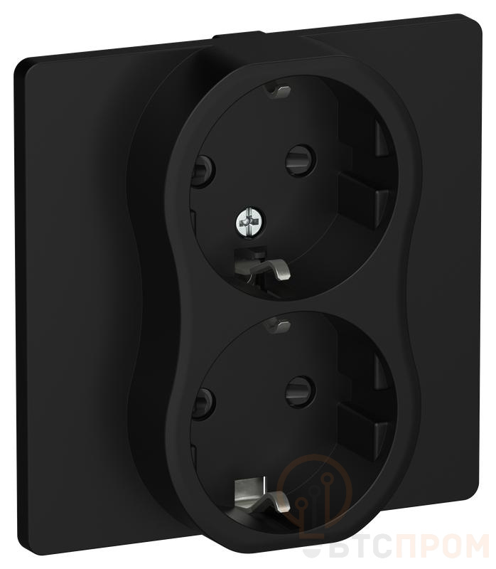 Розетка 2-м СП FLITE РСш12-0-К-ФлЧ 16А с заземл. с защ. шторками в сборе механизм черн. IEK FI-R24C-16-K02