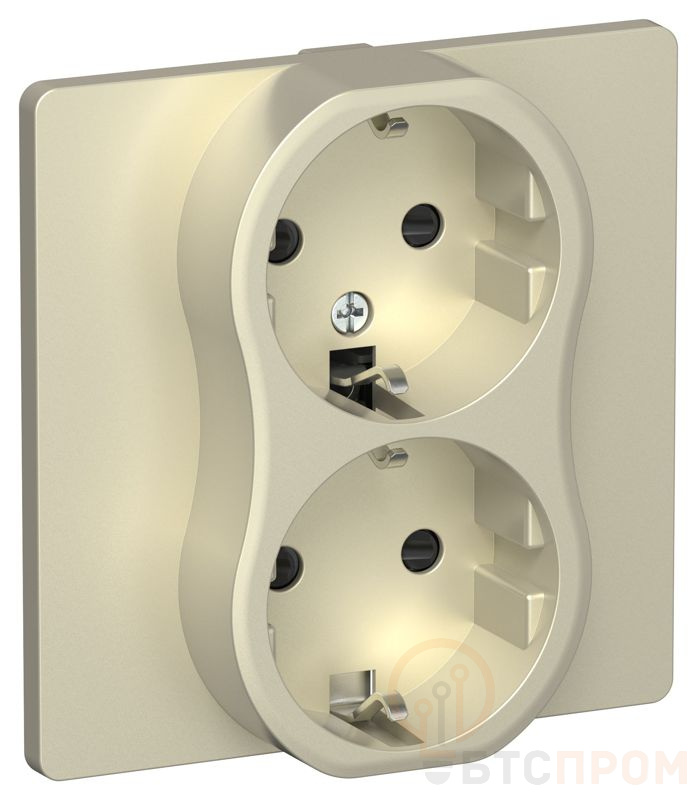 Розетка 2-м СП FLITE РСш12-0-К-ФлШ 16А с заземл. с защ. шторками в сборе механизм шампань IEK FI-R24C-16-K37