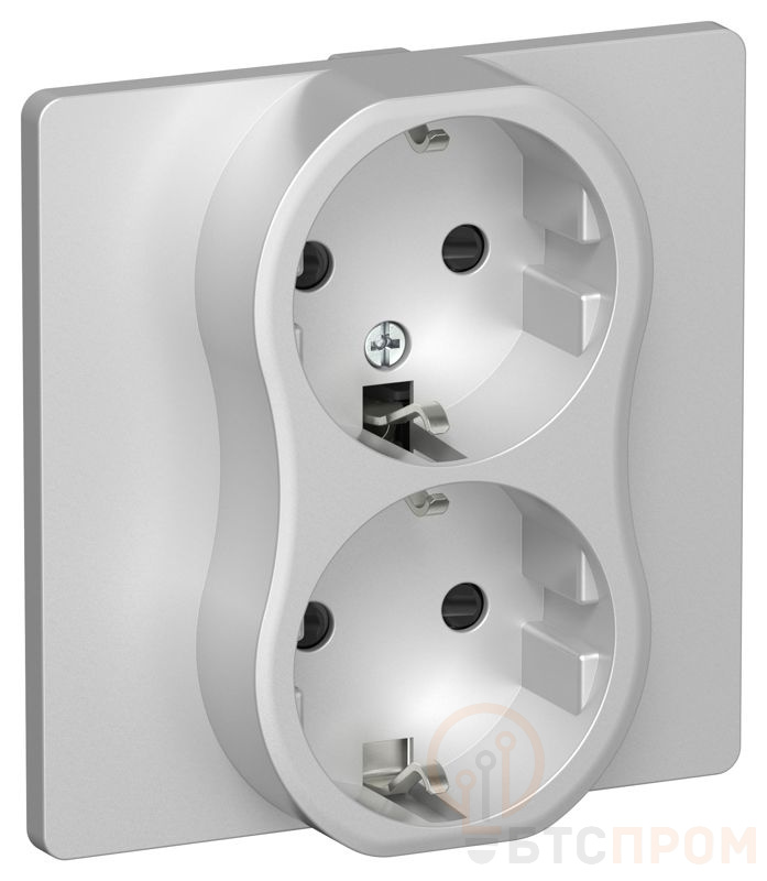 Розетка 2-м СП FLITE РСш12-1-К-ФлА 16А с заземл. с защ. шторками безвинтовое крепление в сборе механизм алюм. IEK FI-R24C-16-1-K47