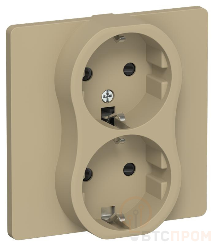 Розетка 2-м СП FLITE РСш12-1-К-ФлХ 16А с заземл. с защ. шторками безвинтовое крепление в сборе механизм хаки IEK FI-R24C-16-1-K59