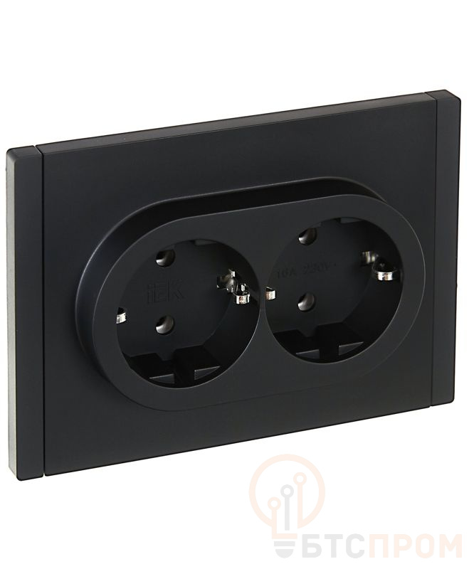 Розетка 2-м СП FORTE&PIANO FP124 16А с заземл. без защ. шторок безвинт. крепл. черн. IEK FP-R21-16-1-K02