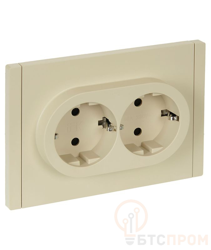 Розетка 2-м СП FORTE&PIANO FP423 16А с заземл. защ. шторки безвинт. крепл. ваниль IEK FP-R24-16-1-K10