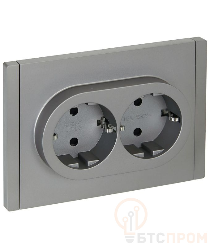 Розетка 2-м СП FORTE&PIANO FP523 16А с заземл. защ. шторки безвинт. крепл. сталь IEK FP-R24-16-1-K46
