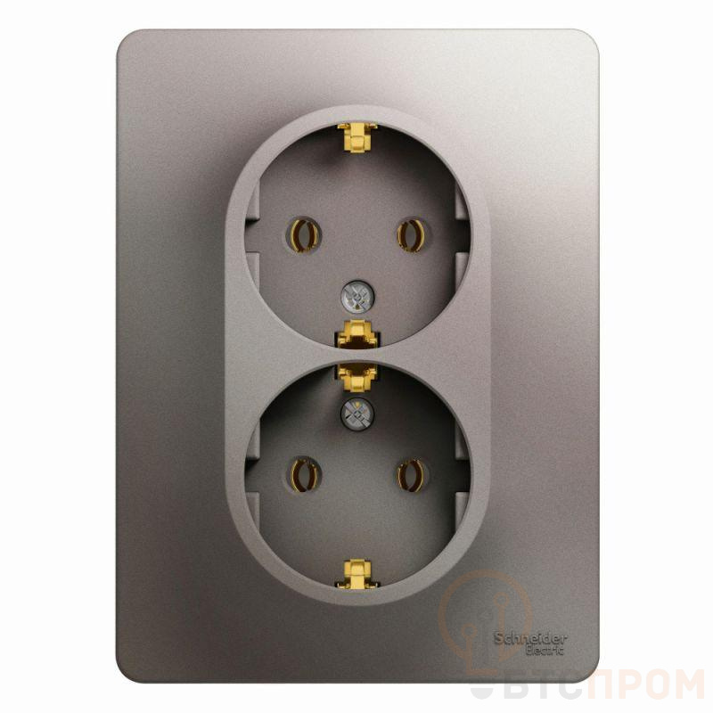 Розетка двойная Systeme Electric (ранее Schneider Electric) серии Glossa (в сборе, цвет платина) с заземлением, без шторок подходит для сетей 250 В, на ток 16 А. - Заземляющий контакт обеспечивает дополнительную защиту от удара электрическим током. При наличии заземления электрический потенциал уходит в землю, защищая человека. - Выполнен из материала PС+ASA, стойкого к УФ-излучению и появлению царапин. - Двойная розетка позволяет подключить два устройства в одном месте.