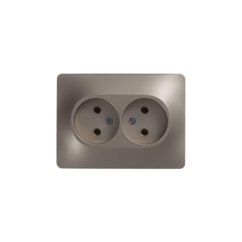 Розетка двойная Systeme Electric (ранее Schneider Electric) серии Glossa (в сборе, цвет титан) без заземления и без шторок подходит для сетей 250 В, на ток 16 А. - Выполнен из материала PС+ASA, стойкого к УФ-излучению и появлению царапин. - Эргономичные клеммы розеток расположены в один ряд. - Двойная розетка позволяет подключить два устройства в одном месте.