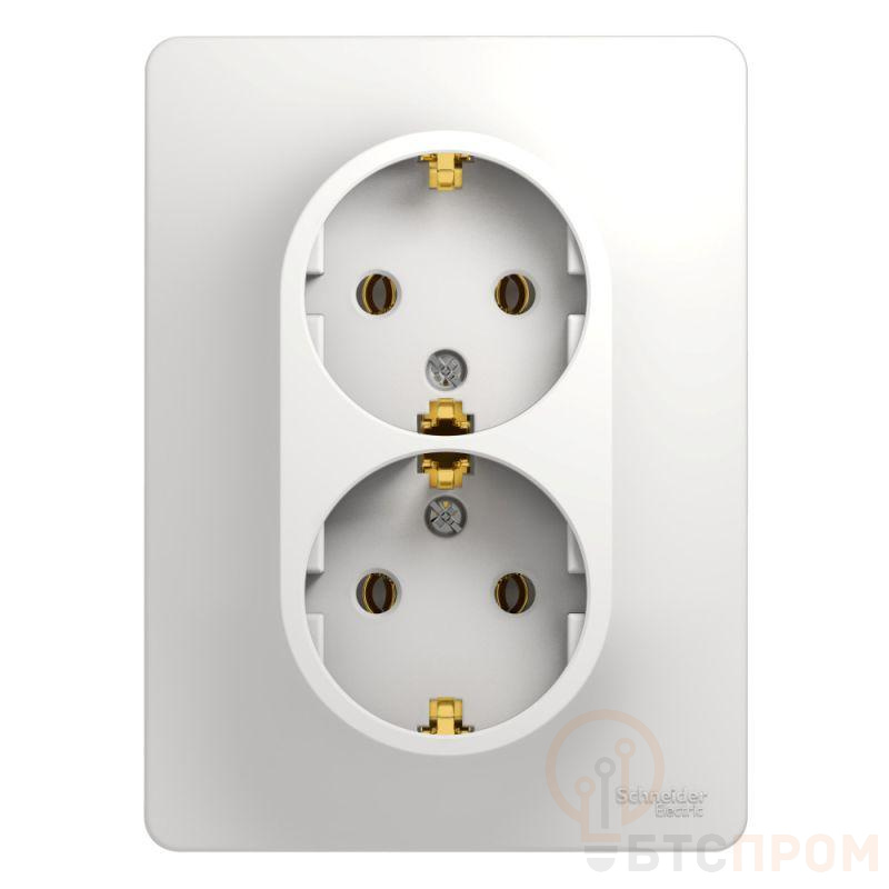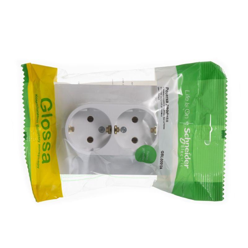 Розетка двойная Systeme Electric (ранее Schneider Electric) серии Glossa (в сборе, цвет белый) с заземлением, без шторок подходит для сетей 250 В, на ток 16 А. - Заземляющий контакт обеспечивает дополнительную защиту от удара электрическим током. При наличии заземления электрический потенциал уходит в землю, защищая человека. - Выполнен из материала PС+ASA, стойкого к УФ-излучению и появлению царапин. - Двойная розетка позволяет подключить два устройства в одном месте.