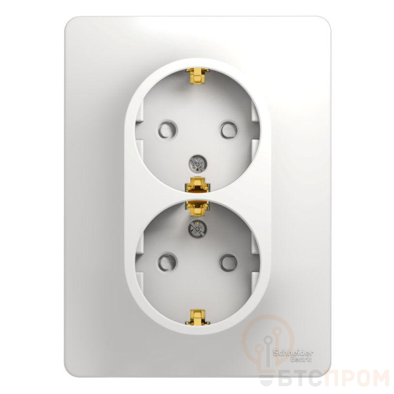 Розетка двойная Systeme Electric (ранее Schneider Electric) серии Glossa (в сборе, цвет белый) с заземлением и шторками подходит для сетей 250 В, на ток 16 А. - Заземляющий контакт обеспечивает дополнительную защиту от удара электрическим током. При наличии заземления электрический потенциал уходит в землю, защищая человека. - Выполнен из материала PС+ASA, стойкого к УФ-излучению и появлению царапин. - Двойная розетка позволяет подключить два устройства в одном месте.