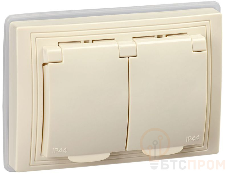 Розетка 2-м СП Кварта РСбш12-3-ККм-44 16А IP44 с заземл. защ. шторки с крышкой GENERICA KV-R26-16-44-K33