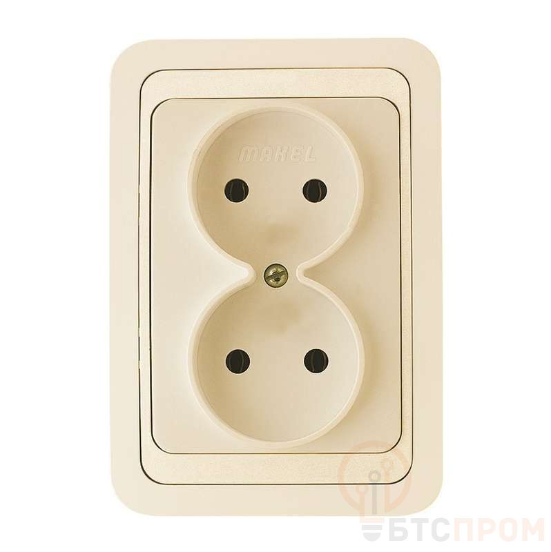 Розетка 2-м СП Mimoza без заземл. крем/крем. 25017 воплощает в себе лучшие традиции классической формы, плавные линии, округлые формы и элегантность выделяют серию среди аналогов. Квадратной формы, со стороной, равной 81 мм, кремового цвета. Механизм выполнен из негорючего материала, на керамическом или пластиковом основании из полиамида, который не поддерживает горение до 850°С. IP20. Предназначен для внутренней установки, монтируется на глубину 43,8 мм, на одном уровне с поверхностью стены.