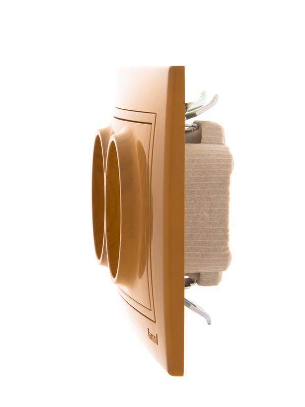 Розетка 2-м СП Мира керам. без заземл. ольха Lezard 701-0701-128 для скрытой установки сочетает в себе гармонию форм с изяществом плавных линий и гладкой фактуры. Изделия данной серии удачно вписываются в самый изысканный интерьер и производят приятное впечатление. Корпус представляет собой форму из негорючего пластика, с керамическим основанием, цвета "ольха", декорирована рамкой. Подпружиненные лапки крепления обеспечивают комфортный и легкий монтаж изделия. Монтируется на одном уровне с поверхностью стены. Рекомендованы для жилых помещений и административных зданий.