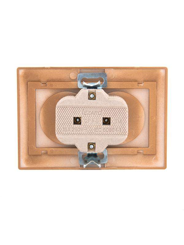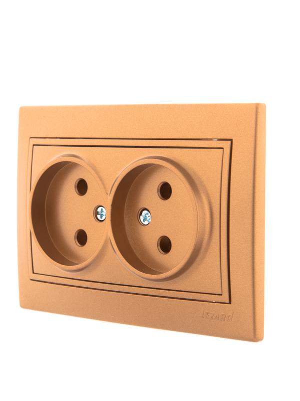 Розетка 2-м СП Mira 16А IP20 без заземл. со вставкой керамика зол. метал. LEZARD 701-1313-128 фото в каталоге от BTSprom.by