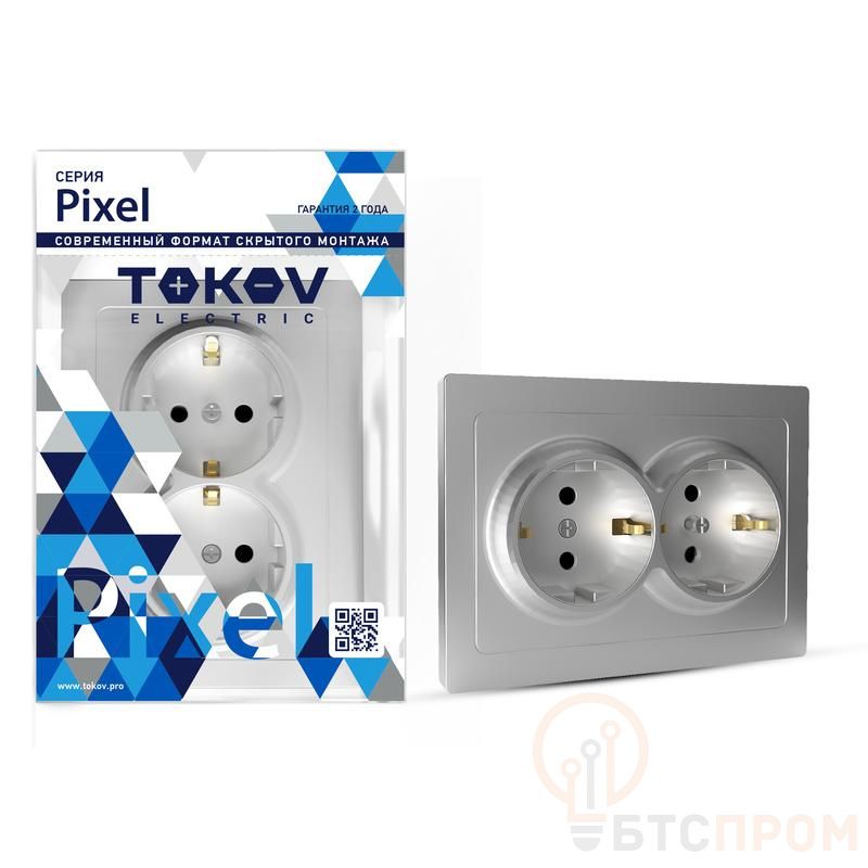 Розетка 2-м СП Pixel 16А IP20 с заземл. защ. шторки в сборе алюм. TOKOV ELECTRIC TKE-PX-R2FZSF-C03 фото в каталоге от BTSprom.by