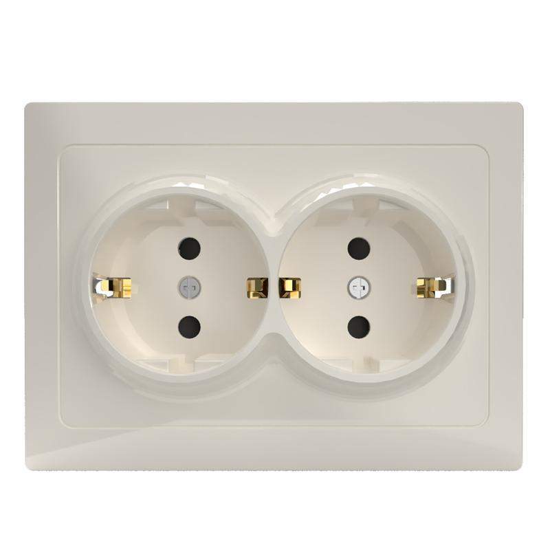 розетка 2-м сп brite рсш12-3-бркр 16а в сборе с заземл. защ. шторки беж. iek br-r24-16-k10-f от BTSprom.by