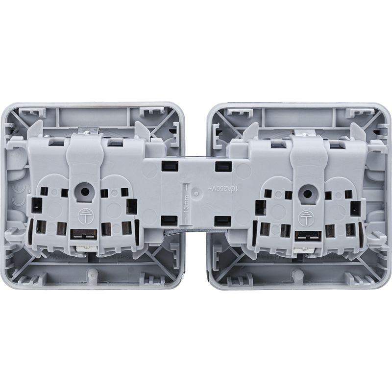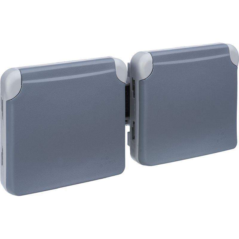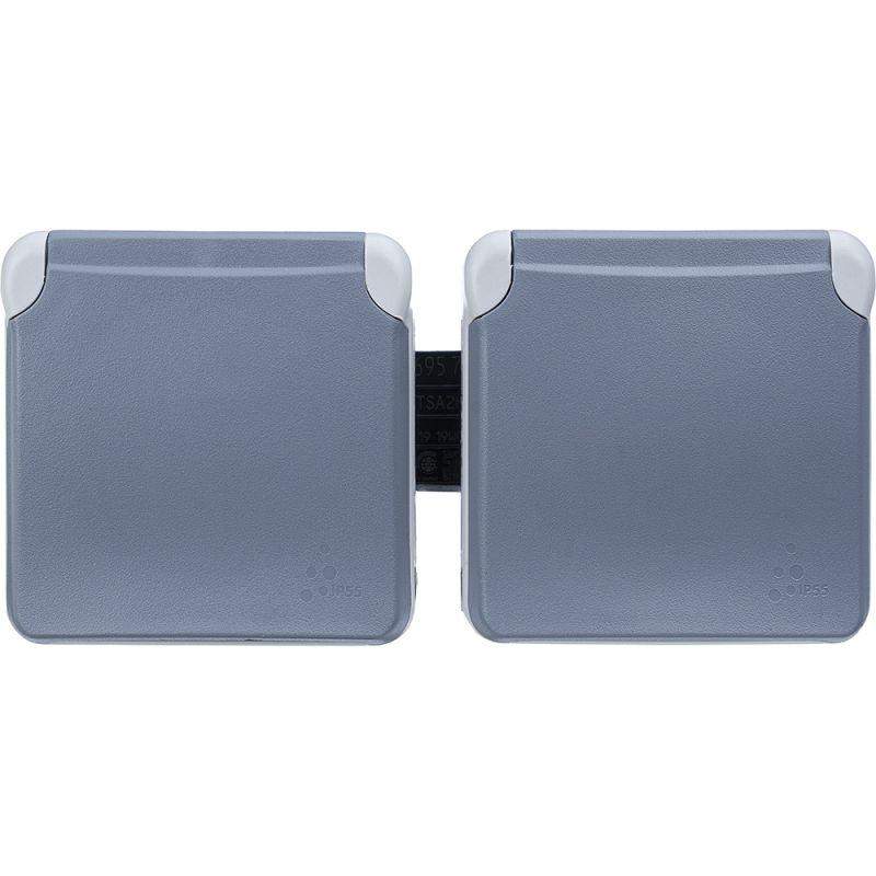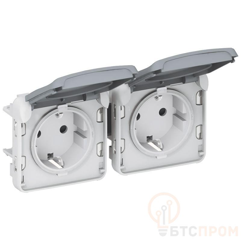 Розетка 2-м СП Plexo 16А IP55 горизонт. 2х2P+E с заземл. с крышкой немецк. стандарт механизм сер. Leg 069576
