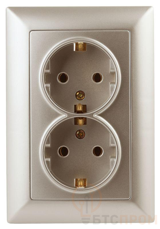 Розетка двойная 2-я серии Intro Solo скрытой установки цвет шампань 4-205-04. Номинальные характеристики 16А 250В. Розетка выполнена из негорючего термопласта, укомплектована одноместной рамкой, оснащена винтовыми клеммами. Клеммы с двумя отверстиями позволяют соединять соседние розетки шлейфом. Установка в подрозетник производится как на монтажные лапки, так и на винты.