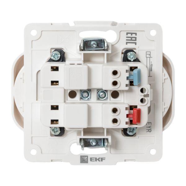 Розетка двухместная EKF серии Стокгольм без заземления и со шторками станет отличным решением для стильного помещения при подключении устройств. Шторки открываются при одновременном давлении в оба отверстия и препятствуют проникновению посторонних предметов, обеспечивая дополнительную безопасность. Выполнена из поликарбоната, устойчивого к ультрафиолетовому излучению. Автоматические самозажимные клеммы упрощают и ускоряют монтаж изделия. Изделие необходимо дополнить рамкой.