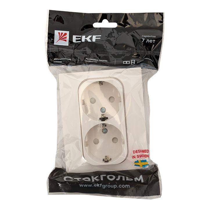 Розетка двухместная EKF серии Стокгольм с заземлением и со шторками станет отличным решением для стильного помещения при подключении устройств. Шторки открываются при одновременном давлении в оба отверстия и препятствуют проникновению посторонних предметов, обеспечивая дополнительную безопасность. Выполнена из поликарбоната, устойчивого к ультрафиолетовому излучению. Автоматические самозажимные клеммы упрощают и ускоряют монтаж изделия.