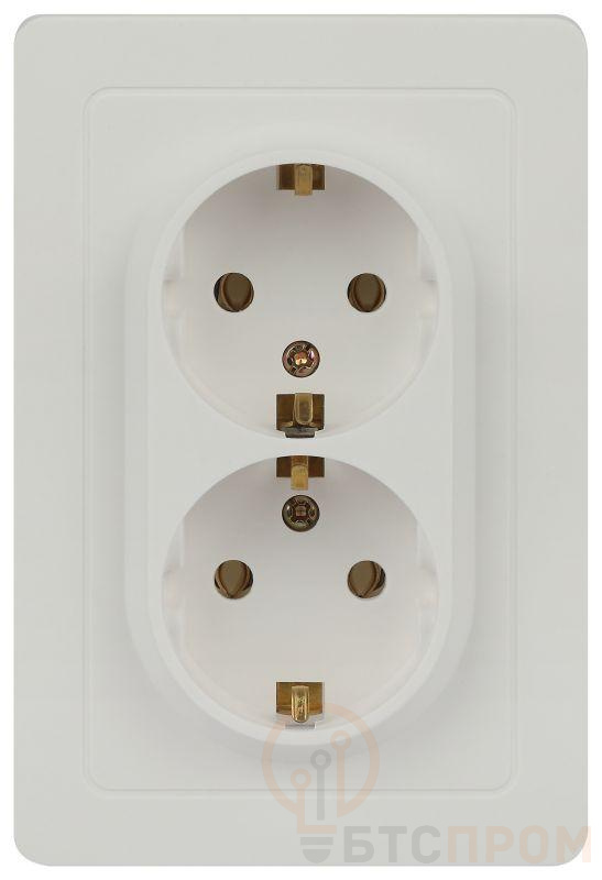 Розетка двойная с заземлением серии Intro ST скрытой установки цвет белый 7-205-01. Номинальные характеристики 16А 250В . Розетка выполнена из негорючего термопласта, укомплектована одноместной рамкой, оснащена винтовыми клеммами. Клеммы с двумя отверстиями позволяют соединять соседние розетки шлейфом. Установка в подрозетник производится как на монтажные лапки, так и на винты.