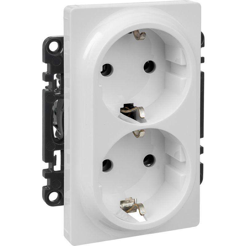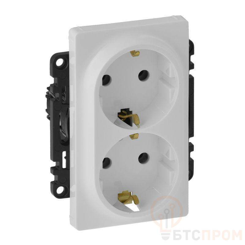 Розетка 2-м СП Valena Life 16А IP20 250В 2х2P+E безвинтов. клеммы с лицев. панелью механизм бел. Leg 753127