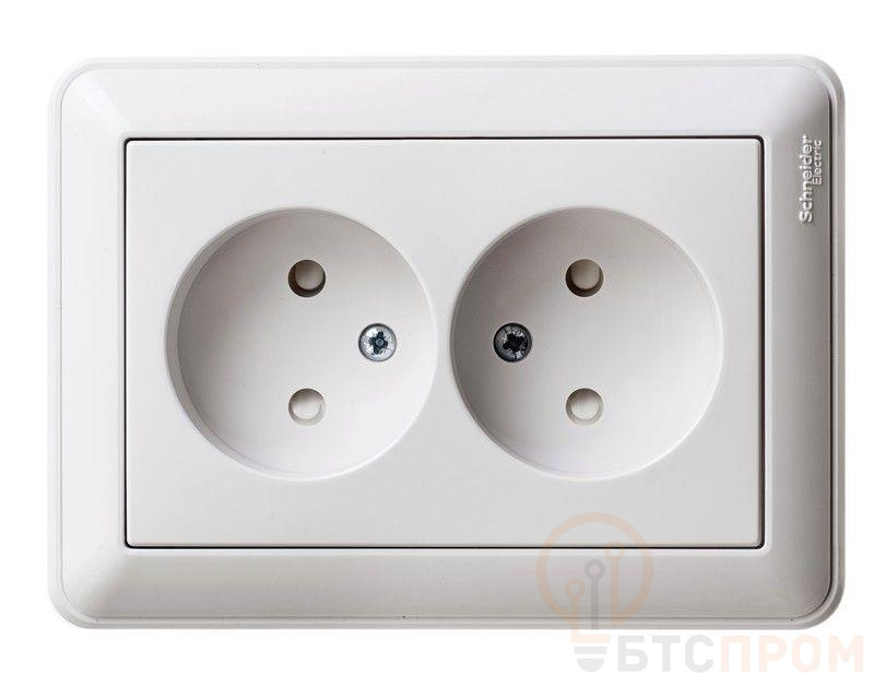 Розетка Systeme Electric (ранее Schneider Electric) W59 (в сборе, цвет белый) двойная без заземления со шторками подходит для сетей 250 В, на ток 16 А. - Контакты розеток выполнены из латуни с высоким содержанием меди. - Шторки обеспечивают дополнительную безопасность в доме, где находятся дети. - Корпус изделия выполнен из высококачественного ABS-пластика.