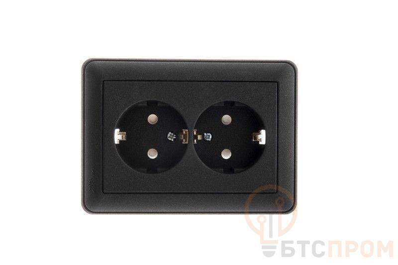 Розетка W59 (в сборе, цвет чёрный бархат) двойнаяс заземлением и шторками подходит для сетей 250 В, на ток 16 А. - Заземляющий контакт обеспечивает дополнительную защиту от удара электрическим током. При наличии заземления электрический потенциал уходит в землю, защищая человека. - Шторки обеспечивают дополнительную безопасность в доме, где находятся дети. - Корпус изделия выполнен из высококачественного ABS-пластика.