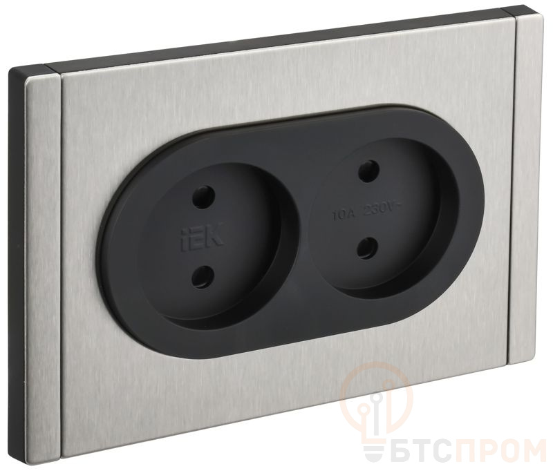 Розетка 2-м СП FORTE&PIANO FP725M 10А без заземл. защ. шторки безвинт. крепл. никель IEK FP-R23-10-1-M-K50