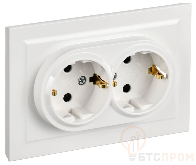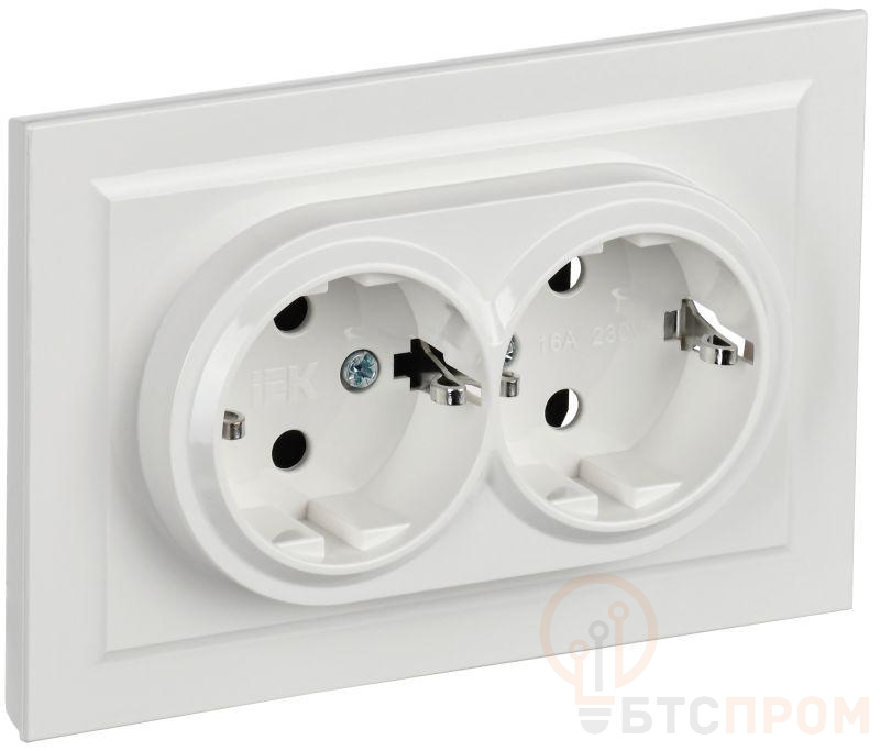 Розетка 2-м СП BRITE РСш12-3-БрБ 16А в сборе с заземл. защ. шторки бел. IEK BR-R24-16-K01-F-PRO фото в каталоге от BTSprom.by