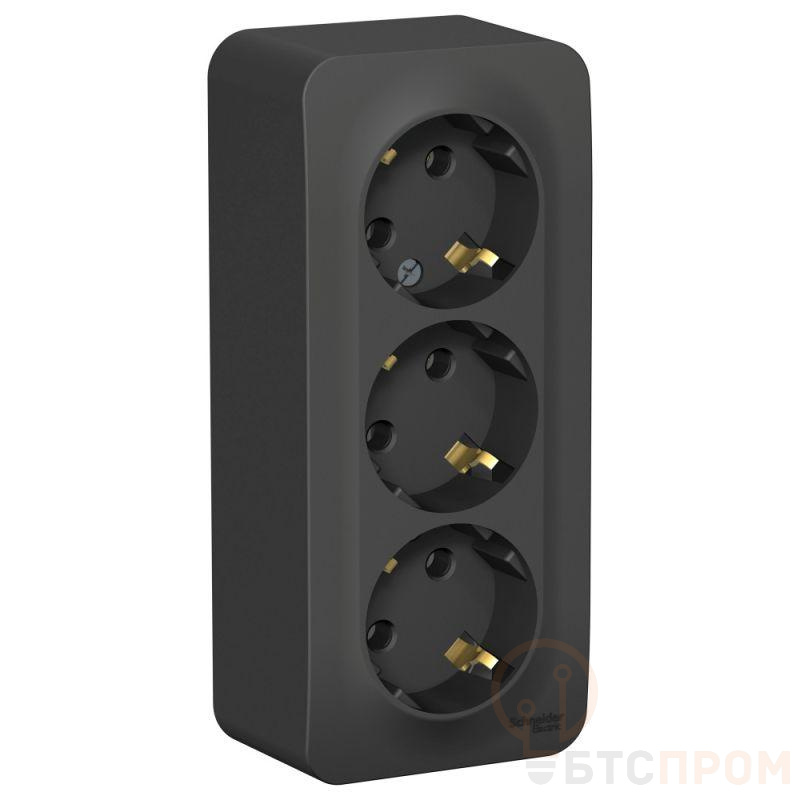 Розетка Systeme Electric (ранее Schneider Electric) BLANCA (антрацит, открытой установки) трехместная, без шторок, с заземлением и изолирующей пластиной предназначена для сетей до 250В, на ток до 16А. Трехместная розетка позволяет подключить три устройства в одном месте. Заземление обеспечивает безопасность при косвенном прикосновении. Она изготовлена из ABS-пластика, проста в установке и удобна в применении.