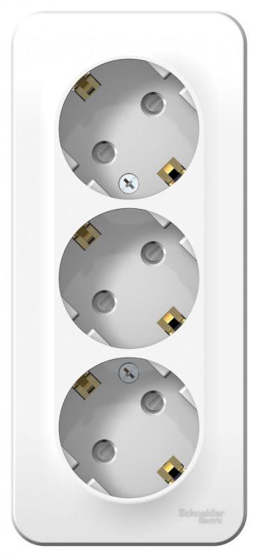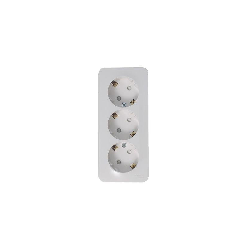 Розетка Systeme Electric (ранее Schneider Electric) BLANCA (белый, открытой установки) трехместная, с заземлением, шторками и изолирующей пластиной предназначена для сетей до 250В, на ток до 16А. Трехместная розетка позволяет подключить три устройства в одном месте. Шторки и заземление обеспечивают дополнительную безопасность. Корпус изделия выполнен из ABS-пластика.