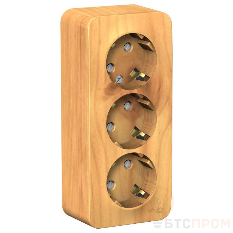 Розетка Systeme Electric (ранее Schneider Electric) BLANCA (ясень, открытой установки) трехместная, с заземлением, шторками и изолирующей пластиной предназначена для сетей до 250В, на ток до 16А. Трехместная розетка позволяет подключить три устройства в одном месте. Шторки и заземление обеспечивают дополнительную безопасность. Изделия цвета Ясень обладают уникальным рисунком, напоминающим древесный сруб. Корпус изделия выполнен из ABS-пластика.
