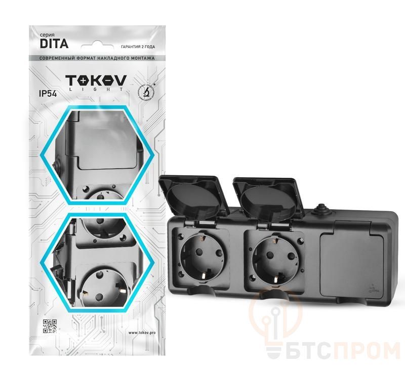 Розетка 3-м ОП Dita 16А IP54 250В с заземл. с крышкой карбон TOKOV ELECTRIC TKL-DT-R3Z-C14-IP54 фото в каталоге от BTSprom.by