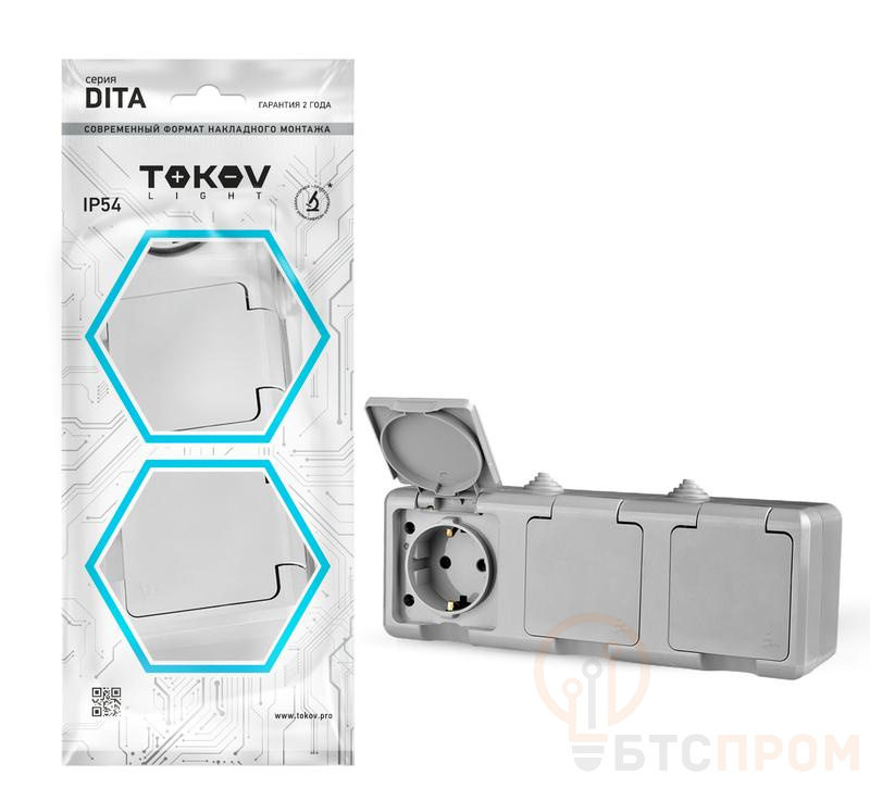 Розетка 3-м ОП Dita 16А IP54 250В с заземл. с сер. крышкой сер. TOKOV ELECTRIC TKL-DT-R3Z-C06-IP54 фото в каталоге от BTSprom.by