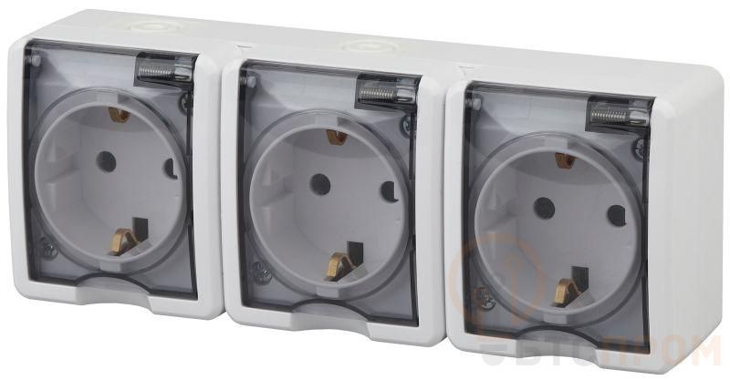 Розетка тройная IP54 3-я серии Эра Эксперт открытой установки цвет белый 11-2405-01. Номинальные характеристики 16А 250В. Устройство выполнено из качественного поликарбоната, оснащёно уникальными винтовыми клеммами ЭКСПЕРТ для максимально качественного зажима кабеля в механизме.