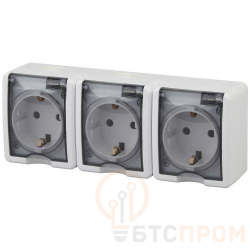 Розетка 3х2P+E IP54, шторки, 16АХ-250В, ОУ, Эра Эксперт, белый.