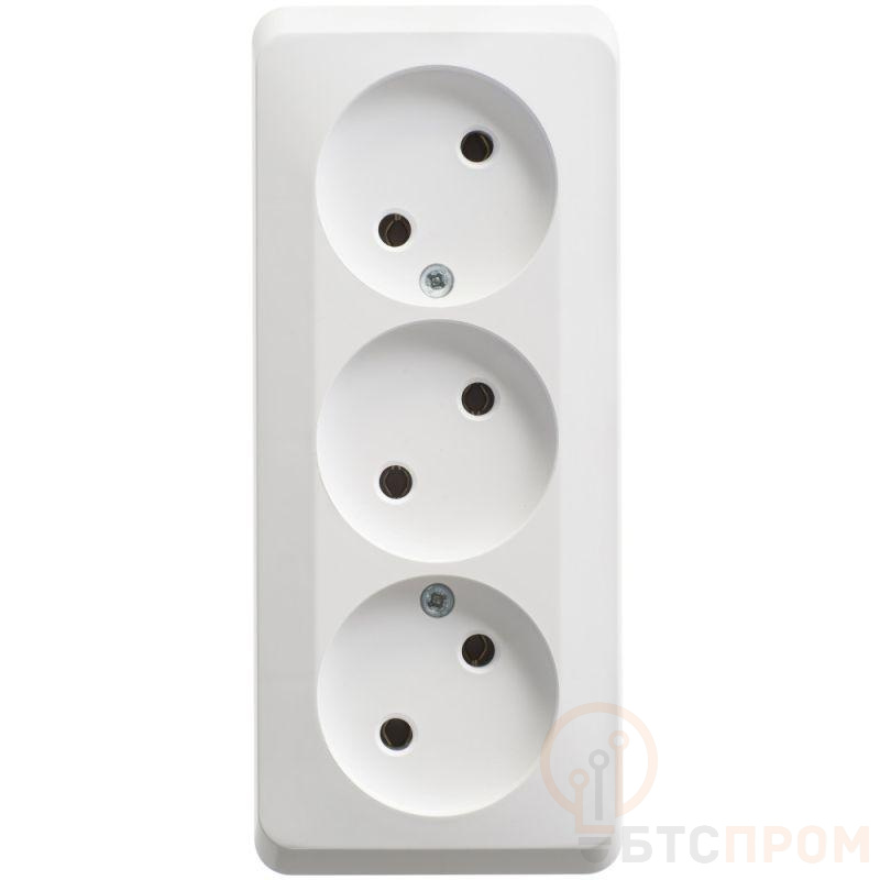Розетка Systeme Electric (ранее Schneider Electric) ЭТЮД (белый, открытой установки) трёхместная, без шторок и заземления предназначена для применения в сетях до 250В, на ток до 16А. Трёхместная розетка позволяет подключить три устройства в одном месте. Она проста в установке и удобна в применении. Сделано в России.