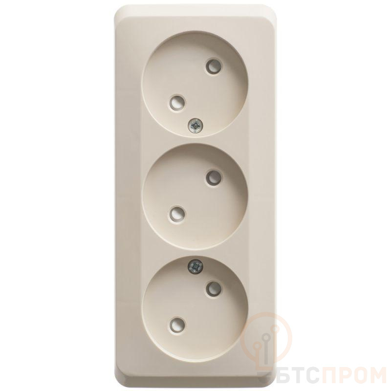 Розетка Systeme Electric (ранее Schneider Electric) ЭТЮД (кремовый, открытой установки) трёхместная со шторками, без заземления предназначена для применения в сетях до 250В, на ток до 16А. Трёхместная розетка позволяет подключить три устройства в одном месте. Шторки обеспечивают дополнительную безопасность в доме, где находятся дети. Сделано в России.
