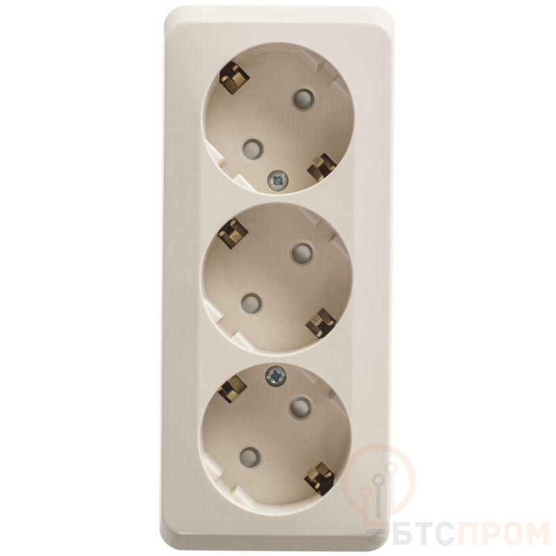 Розетка Systeme Electric (ранее Schneider Electric) ЭТЮД (кремовый, открытой установки) трёхместная с заземлением и шторками предназначена для применения в сетях до 250В, на ток до 16А. Трёхместная розетка позволяет подключить три устройства в одном месте. Шторки и заземление обеспечивают дополнительную безопасность при косвенных прикосновениях. Сделано в России.