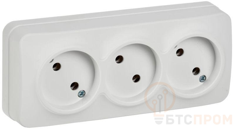 –Розетка 3-м ОП GLORY РС23-2-ХБм 10А без заземл. без защ. шторок бел. матов. IEK ERH30-K01M-10